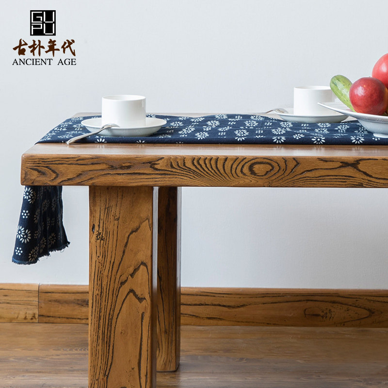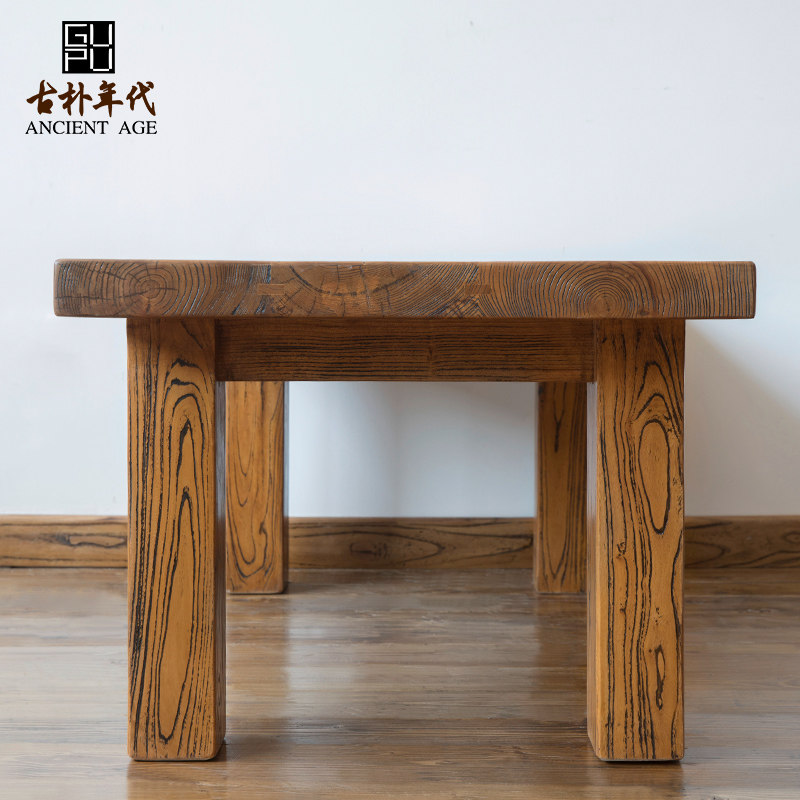 Quaint era Full solid wood tea table Elm furniture living room Modern Chinese simple design rectangular wood tea table