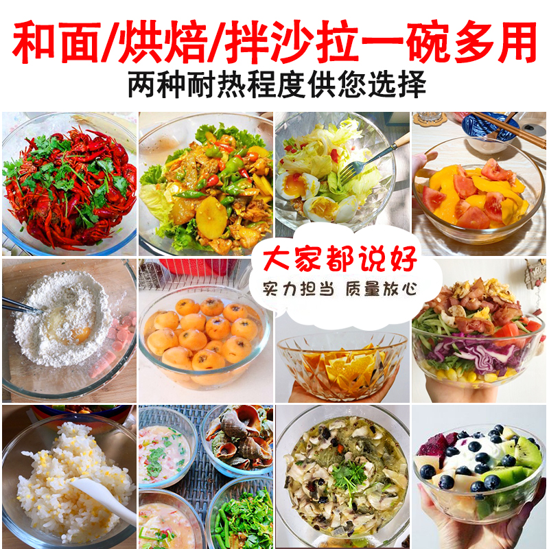 Transparent glass bowl salad bowl European soup bowl creative vegetable and fruit bowl household tableware instant noodle bowl size set