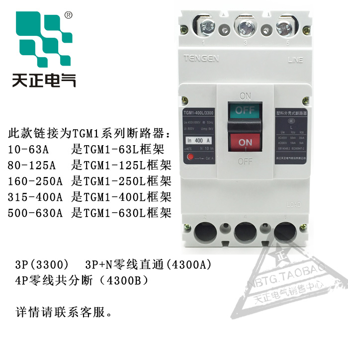 tengen Tiangzheng plastic case circuit breaker tgm1-125L 3300 100 A250A160A400A630A gate
