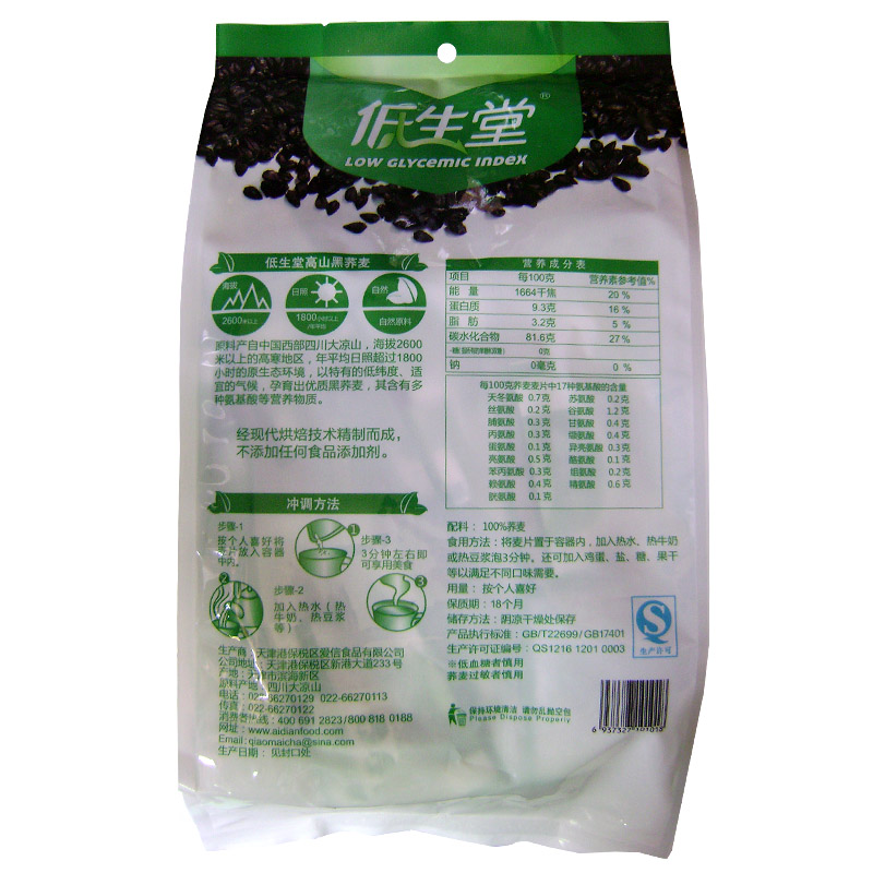 Low Shengtang Alpine Black Buckwheat Oatmeal 500g breakfast for breakfast, ready-to-eat, non-boiled independent packets of cane sugar-free cereal