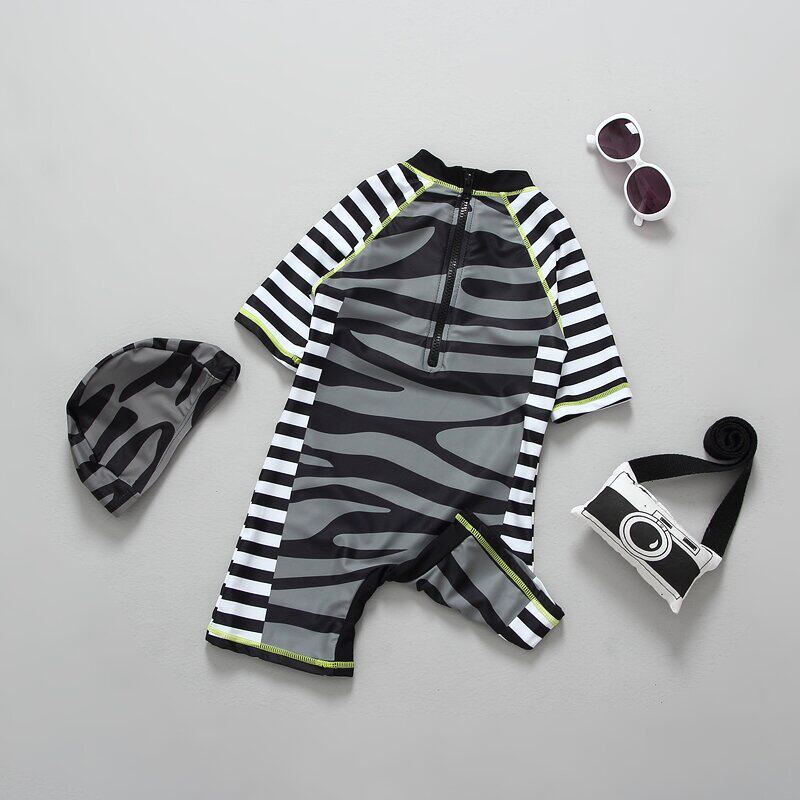 New foreign trade children's swimsuit boy baby stripe sunscreen hot spring warm quick drying surf suit tide