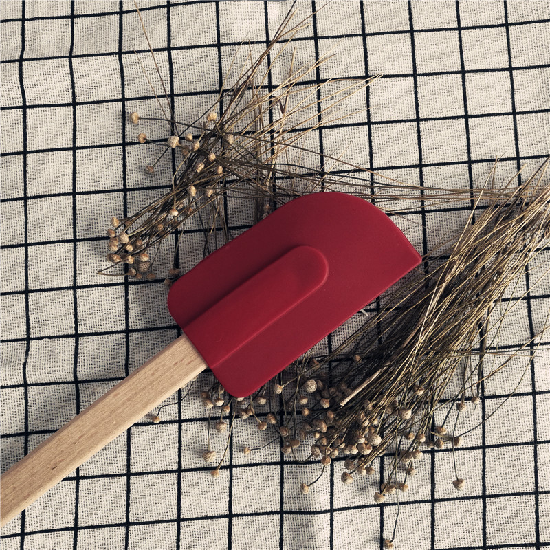Early wood original high temperature resistant silicone scraper wood handle cake cream spatula baking blade stirring scraper