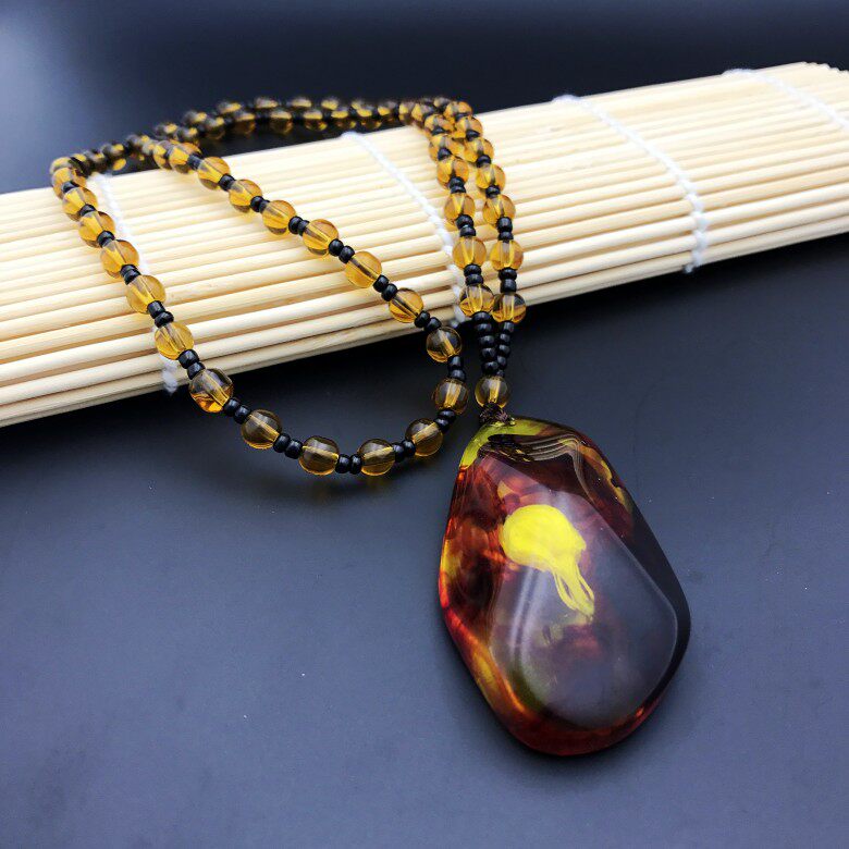 New Ground Stand Products Brazil Plant Fossilized Amber Honey Wax Pendant Worm Perpper Pendant Necklace Factory Price Spot Direct