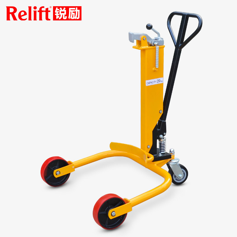 Sharp and simple hand push hydraulic oil barrel carrying car DT250 manual oil barrel caravan manpower lifting drum reverse charging car