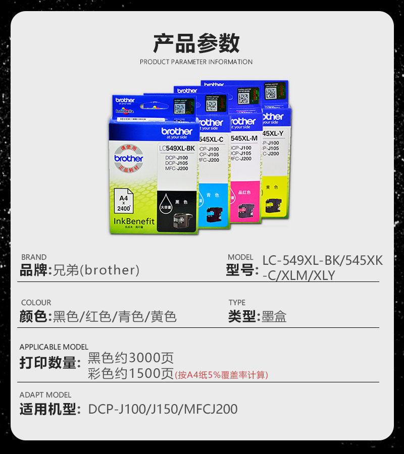 Original brother LC545XL color ink cartridge LC549XL-BK black DCP-J100 J105 MFC-J200