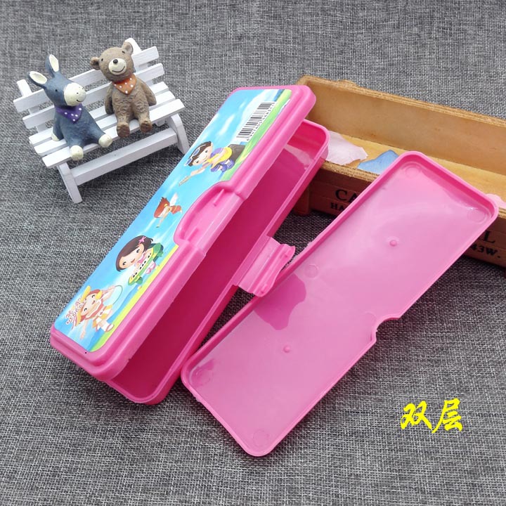 C1141 plastic stationery box 10 children double pencil box school supplies Yiwu 2 yuan shop binary