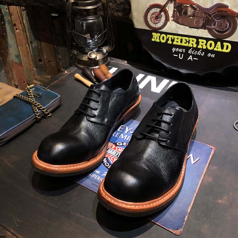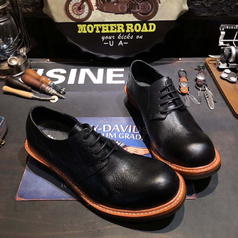 Youth all-match British style low-cut black leather big head retro casual tooling Derby leather shoes men's fashion
