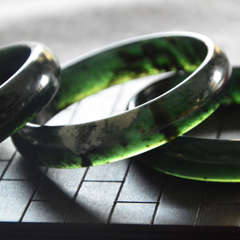 Natural Shaanxi Xi'an Moyu Bracelet Floating Flower Model Women's Health Care Gifts for Mom Authentic Jade Jewelry