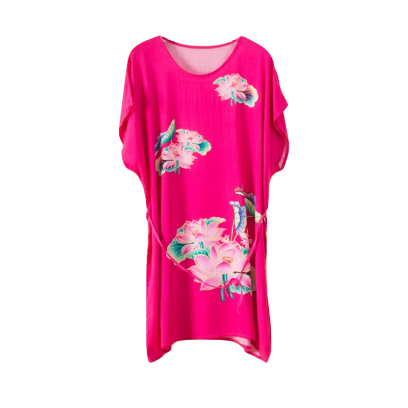 Women's summer cotton silk nightdress one-shoulder skirt rayon cotton silk skirt summer thin section plus fat and large pajamas home service