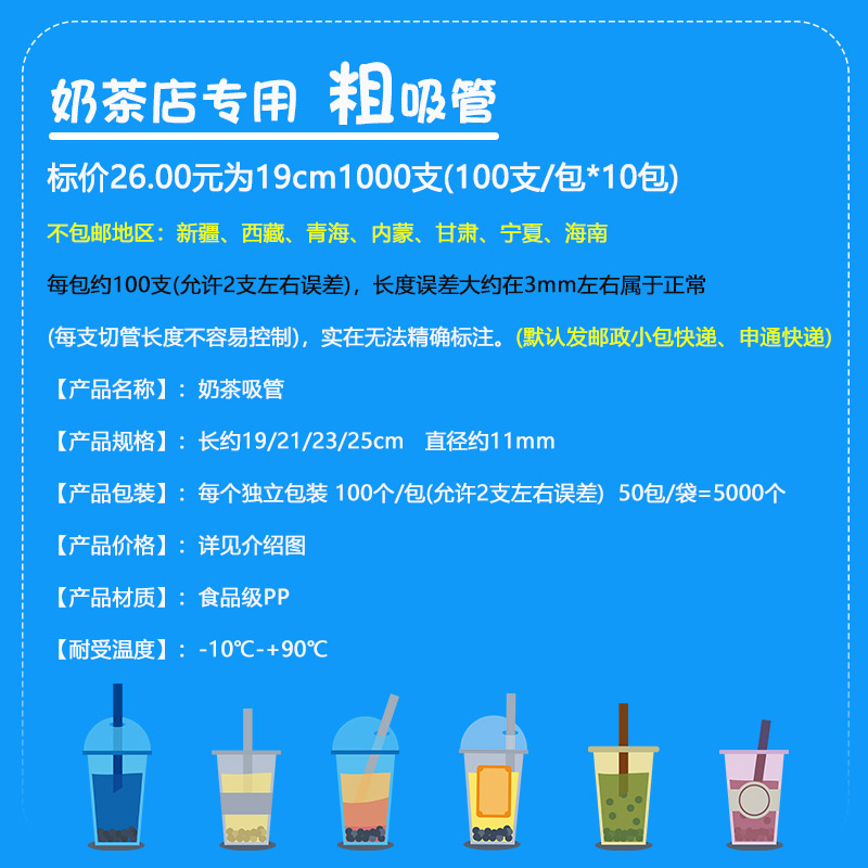 1000 Disposable Straws Pearl Milk Tea Coarse Straws Independent Packaging Color Plastic 19cm * 11mm