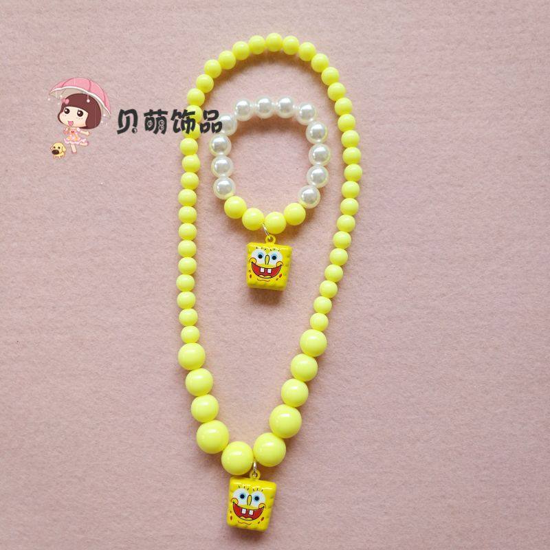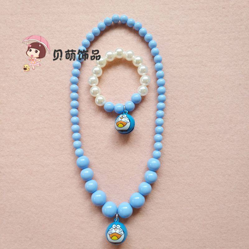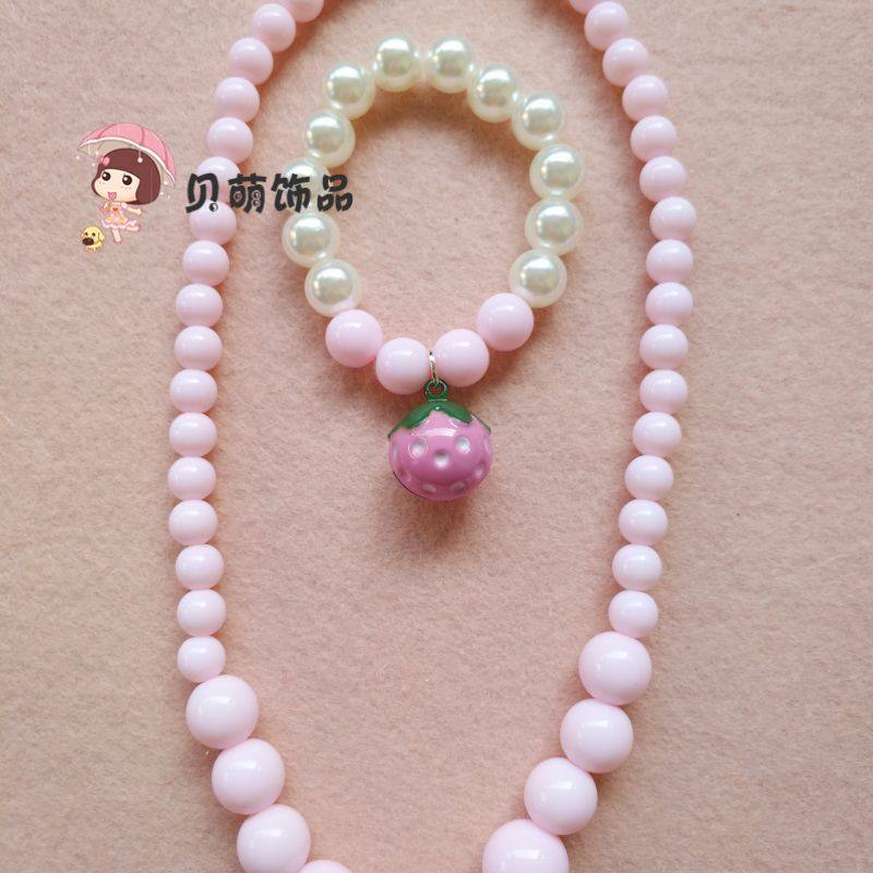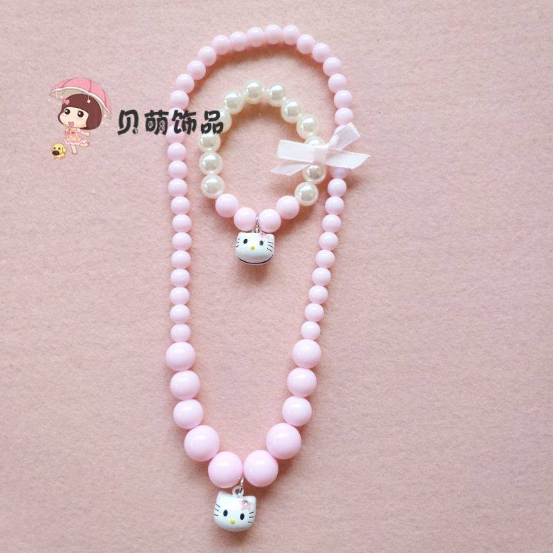 Korean version bell KT Pink pullover necklace bracelet Two-piece set bow Children's jewelry set Girl gift