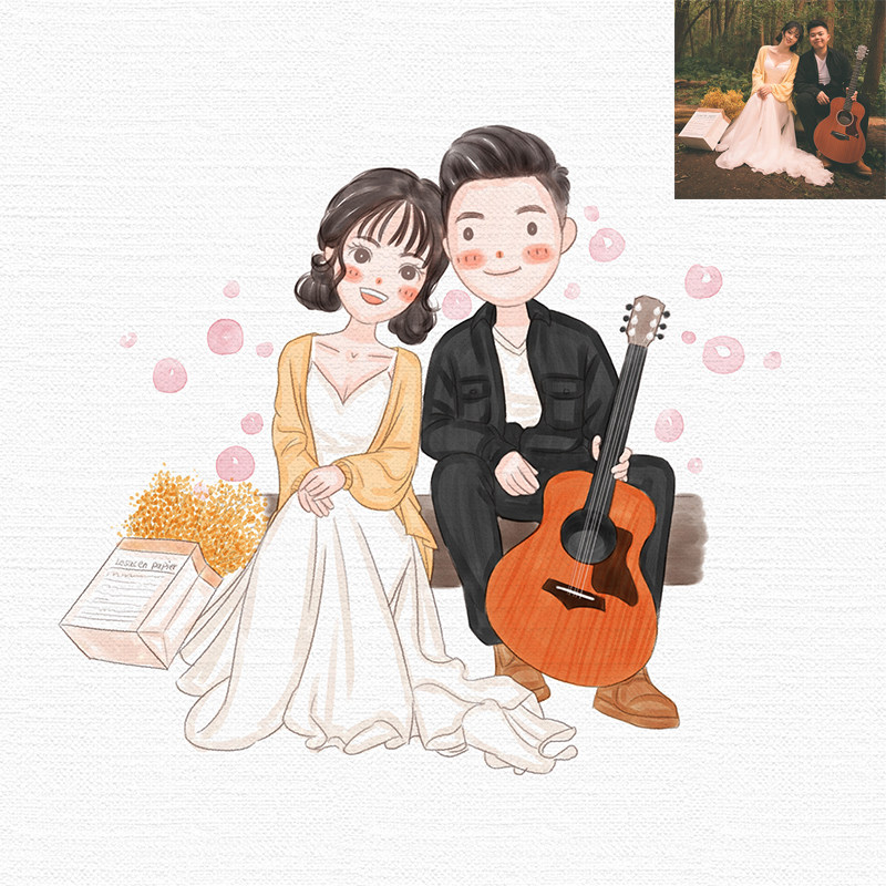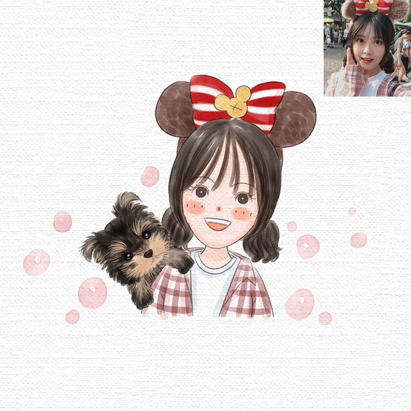 Original Katong comic Q version watercolor painting wind head like design logo custom live-action photo whole body hand-painted image