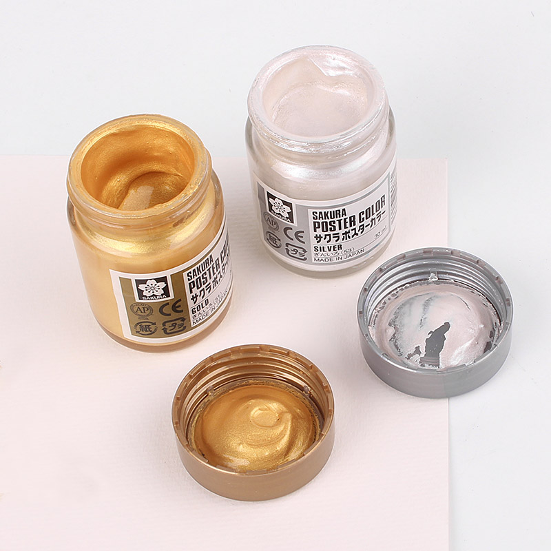 Cherry blossom gold gouache pigment gold powder Silver powder Calligraphy with silver ink gold and silver paste degumming advertising painting 30ml