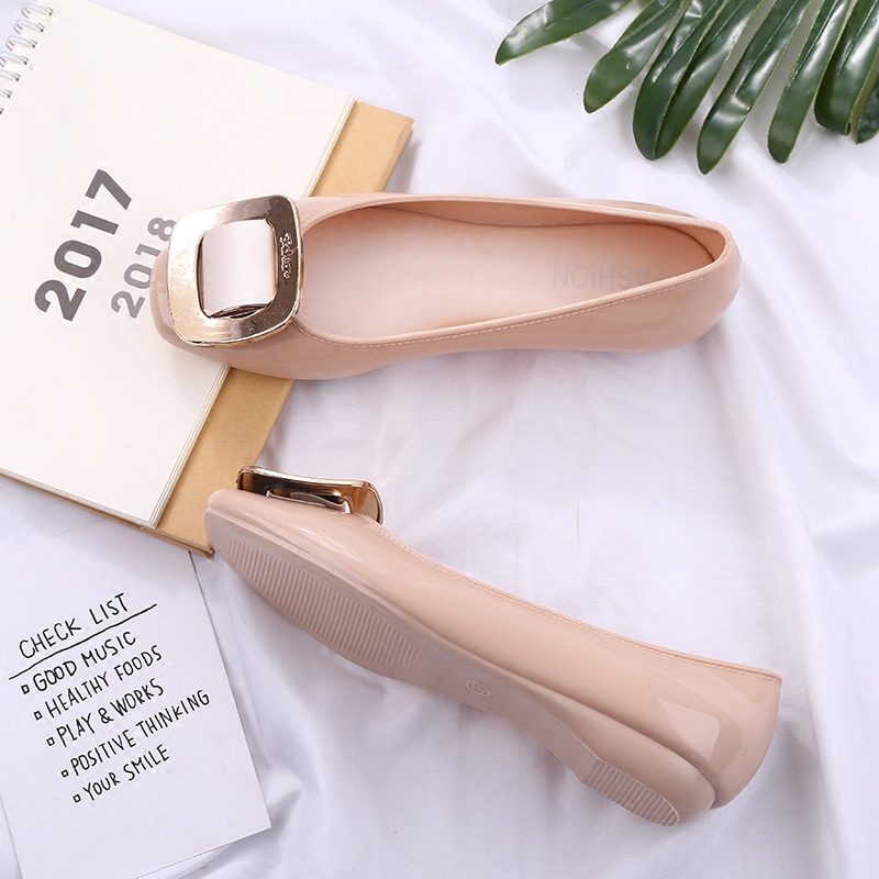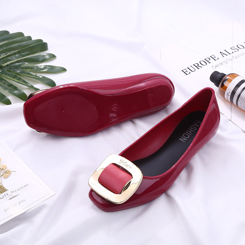 Square buckle shallow mouth casual fashion sweet 2021 new shoes flat jelly women's shoes summer square head Korean edition soft bottom