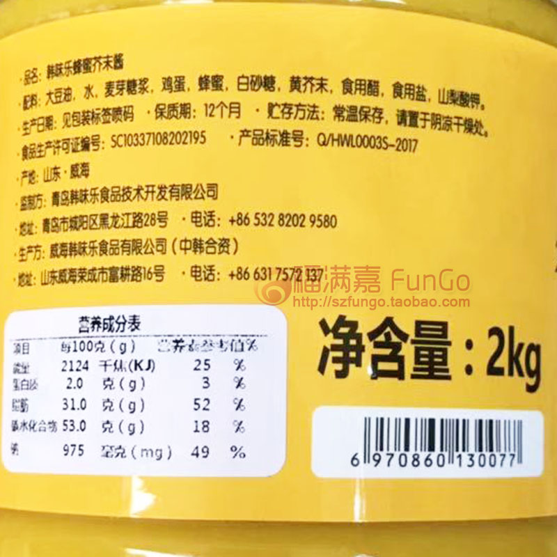 South Korean Korean Taste Honey Mustard Fried Chicken Sauce 2kg Thousand Islands Jam Salad Sauce Big Barrel Fried Chicken Shop Special