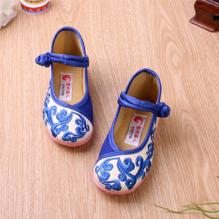 Spring and summer children's old Beijing cloth shoes girls dance performance embroidered shoes baby blue and white porcelain beef tendon bottom traditional single shoes