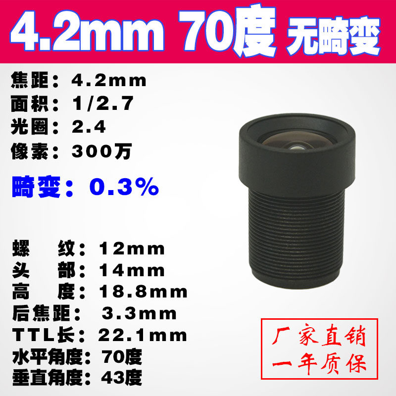 12 million high-definition infrared 850 narrowband 4 2mm industrial camera 70 degrees 3M no distortion and no deformation M12 lens