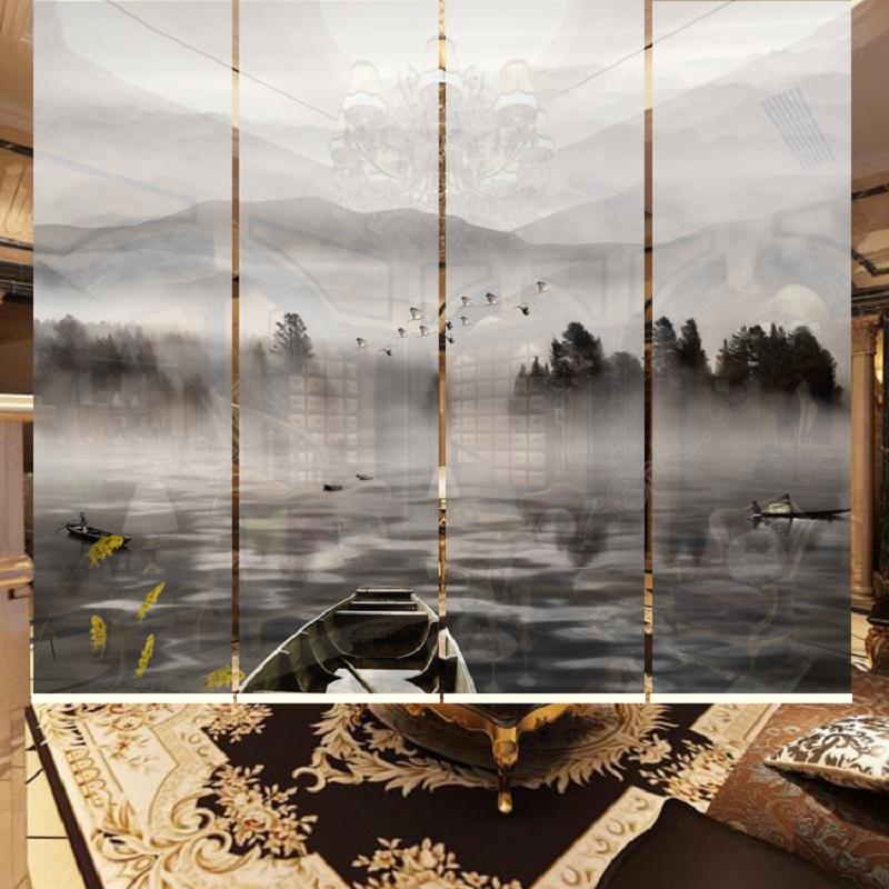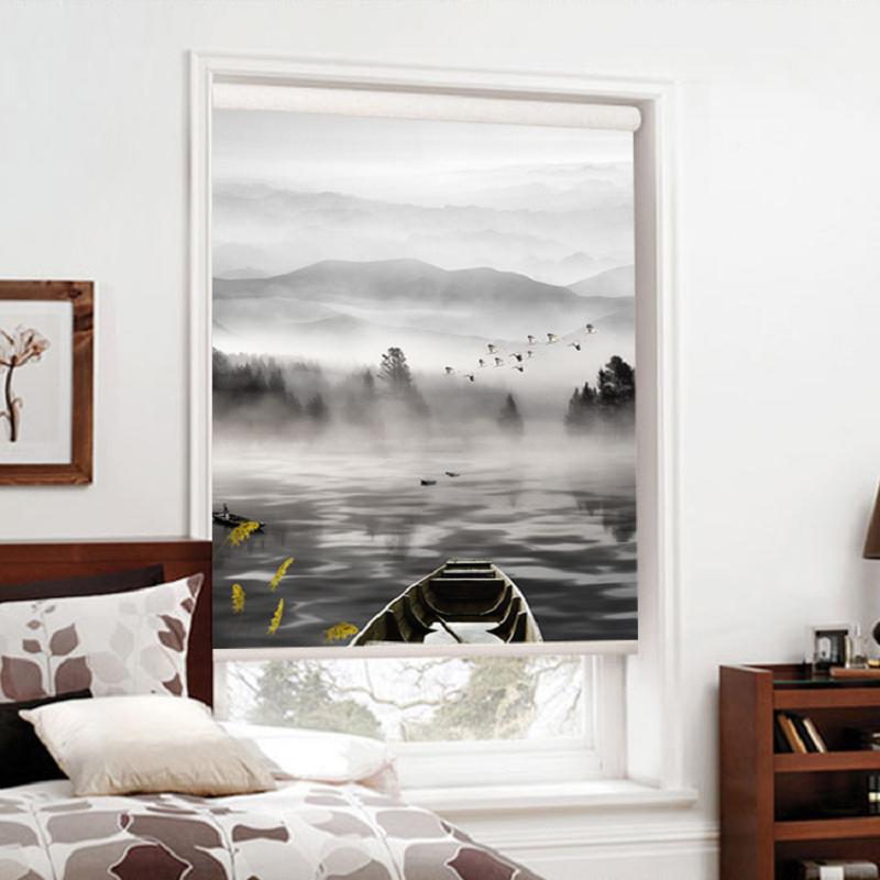 Chinese style classical ink landscape artistic conception screen partition office study living room sunshade heat insulation roller blind