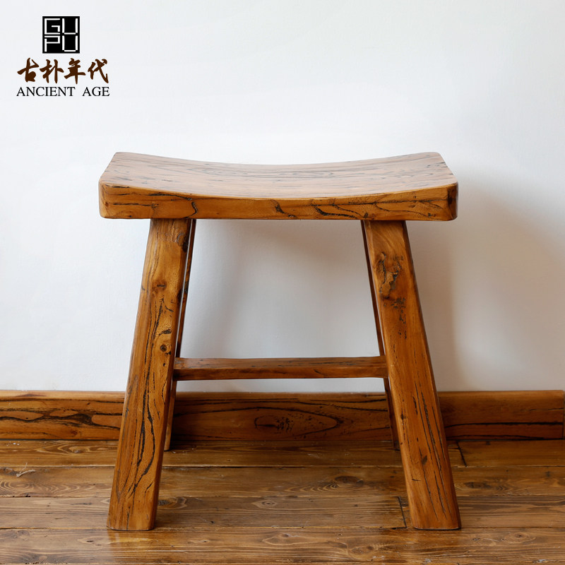 Ancient furniture old elm dining stool all solid wood ingot stool home Square stool simple shoes saddle stool