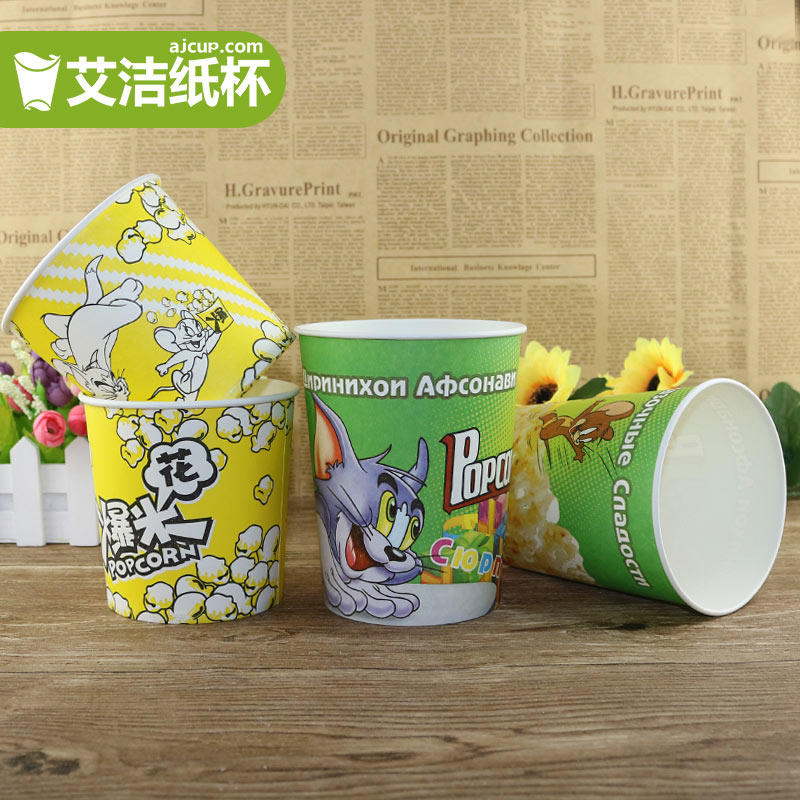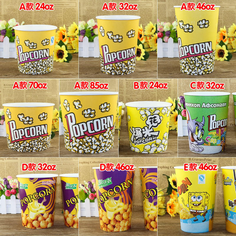 Thickened disposable popcorn bucket 243246oz large paper bucket cartoon paper cup 100 sets to send bags tied