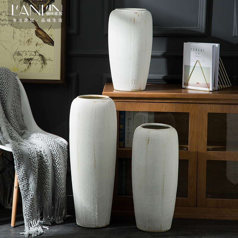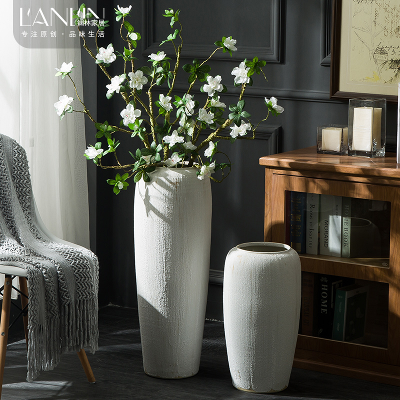 Floor Vase Large White Living Room Dry Flower Floral Art Modern Home Coarse Pottery Chinese Ceramic Pottery Jar Villa Hem