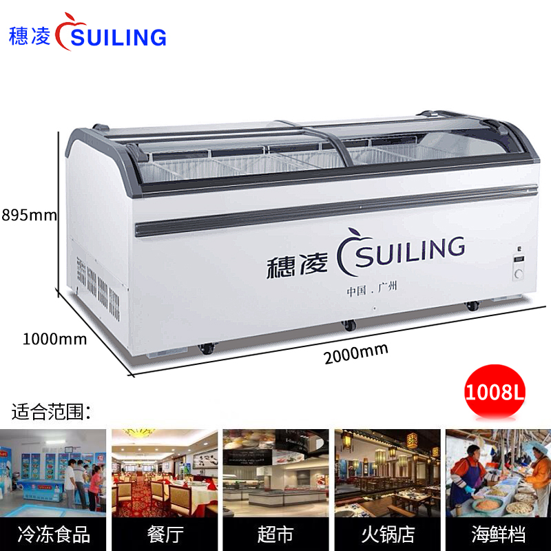 Ear Ling WD4-538 Liter Freezer Commercial Horizontal Single Warm Frozen Glass Frozen Ice-cream Seafood Snow Cabinet 768 l