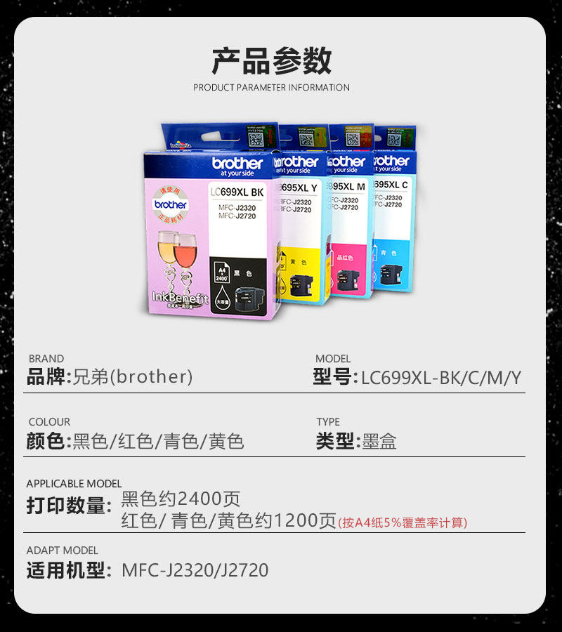 Original Fitted Brothers Ink Cartridges LC699XL-BK Black LC695XL-CMY Color Applicable MFC-J2320 MFC-J2720