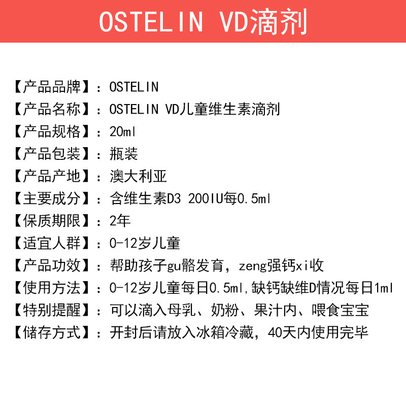 Australian Ostelin VD drops 20ml children baby baby vitamin D3 drip tonic calcium strawberry flavor-Taobao