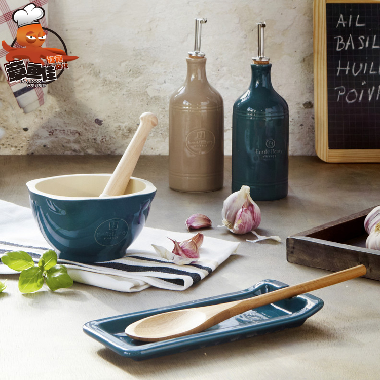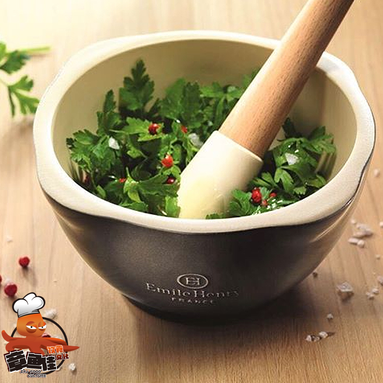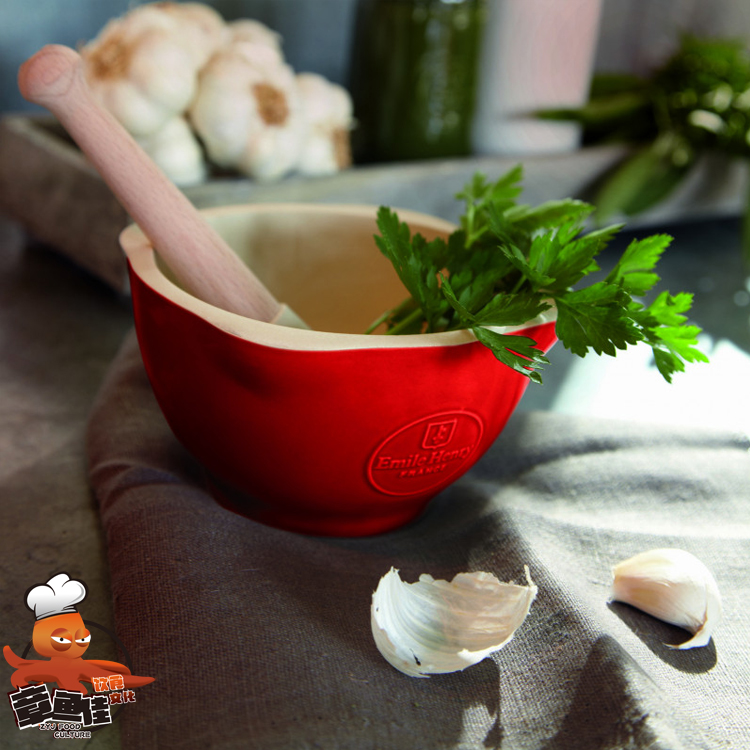 French Emile Henry mortar and pestle enamel color ceramic crushing and grinding seasoning Chinese medicine bowl smashing garlic spices