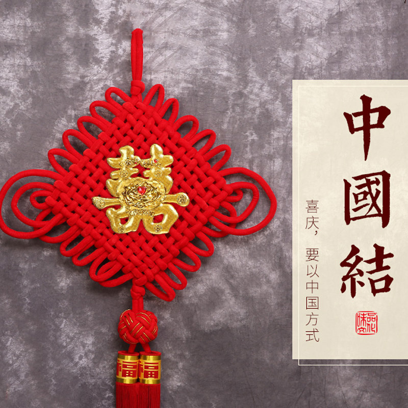 Happy word Chinese knot pendant Wedding wedding room balcony pendant Festive Chinese flocking decorative supplies Safe concentric knot