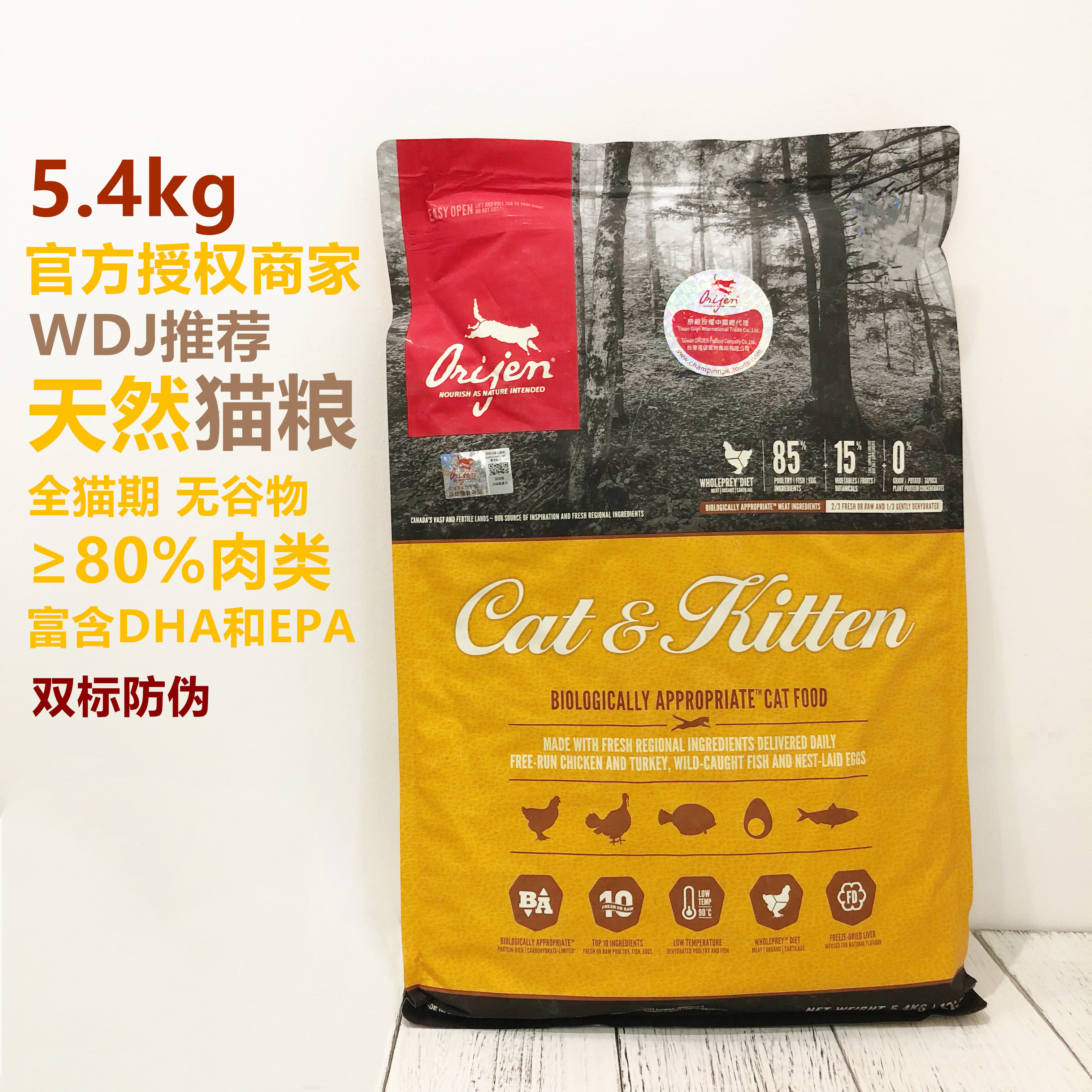 Big fat store double label anti-counterfeiting Orijen eager cat chicken grain-free adult cat food 1 1 8kg 5 4kg