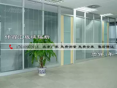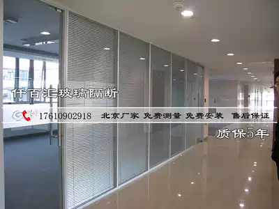 Office frosted clip wire louver double-layer tempered glass partition screen Room with door Aluminum alloy soundproof half wall