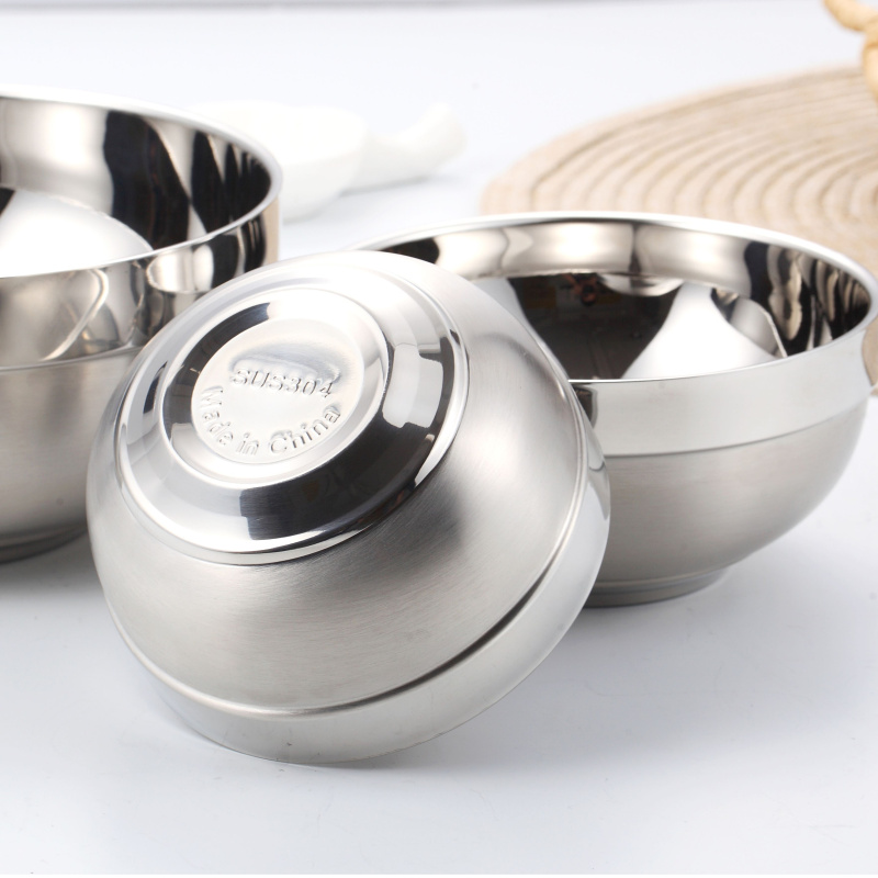 Ugmann Stainless Steel Bowl 304 Double heat insulation adults Home Cafeteria Eating rice bowls Children large thickened Chinese
