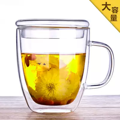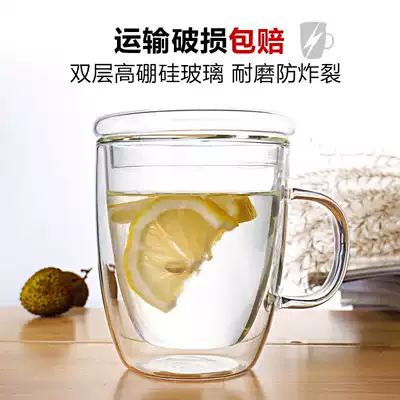 Double transparent glass water cup with lid spoon insulated cup Home Office creative belt coffee cup