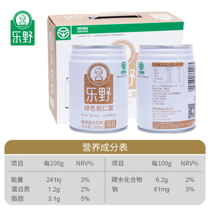 Chengde specialty Leye Almond Dew 240ml * 12 canned high-end plant meringue drink full box