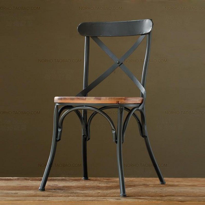 Iron Art Solid Wood Dining Chair Casual Chair Sub Coffee Chair Bar Chair Creative Milk Tea Chair Retro Dining Room Dessert Sofa Chair