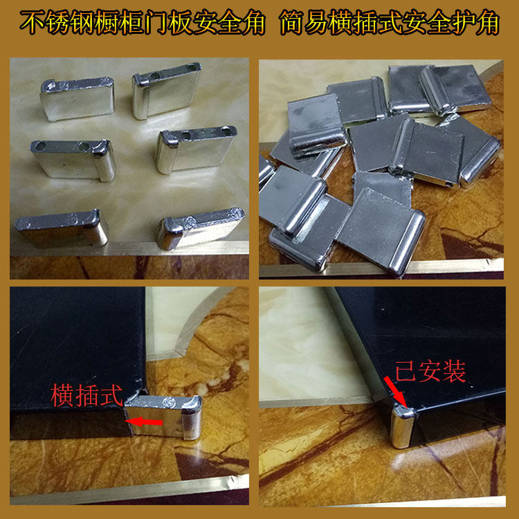 Shiny silver safety corner protector Silver electroplated mirror frame corner code Bright silver horizontal insert safety corner Bright silver cabinet door handle Black small crescent pad deep black big crescent pad big black cabinet foot square