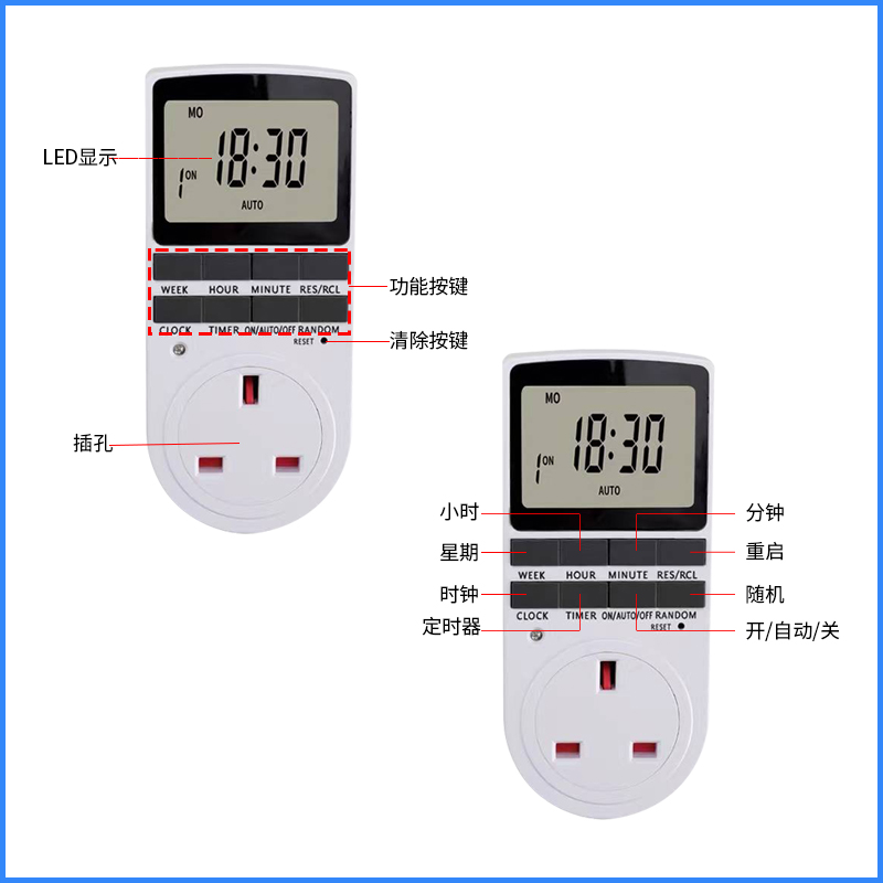English smart home electronic timer kitchen electric vehicle reservation timer switch socket programmable power off