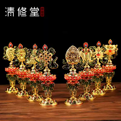 Tibetan tantric instruments for Auspicious Eight Treasures Buddha Temple Buddhist supplies eight auspicious ornaments cloisonne large