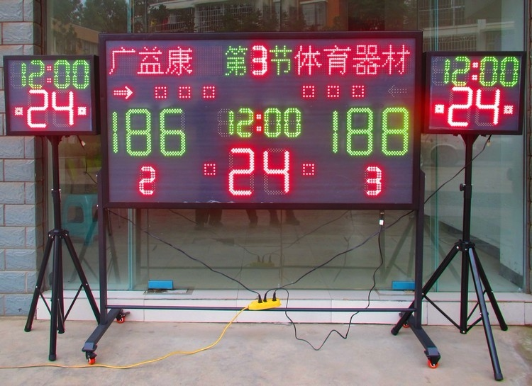 The 24 second timer with a triangle, a 24 second timer contains 2 screens 1 set of controllers 24 seconds timer with basketball frame fixed bracket two cables