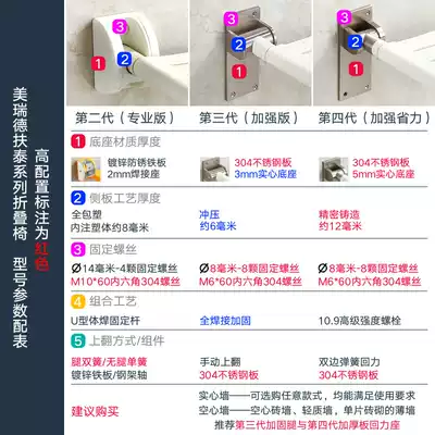 Bathroom folding stool shower seat shower room lengthened and thickened and widened bathing Wall stool Wall stool Wall chair