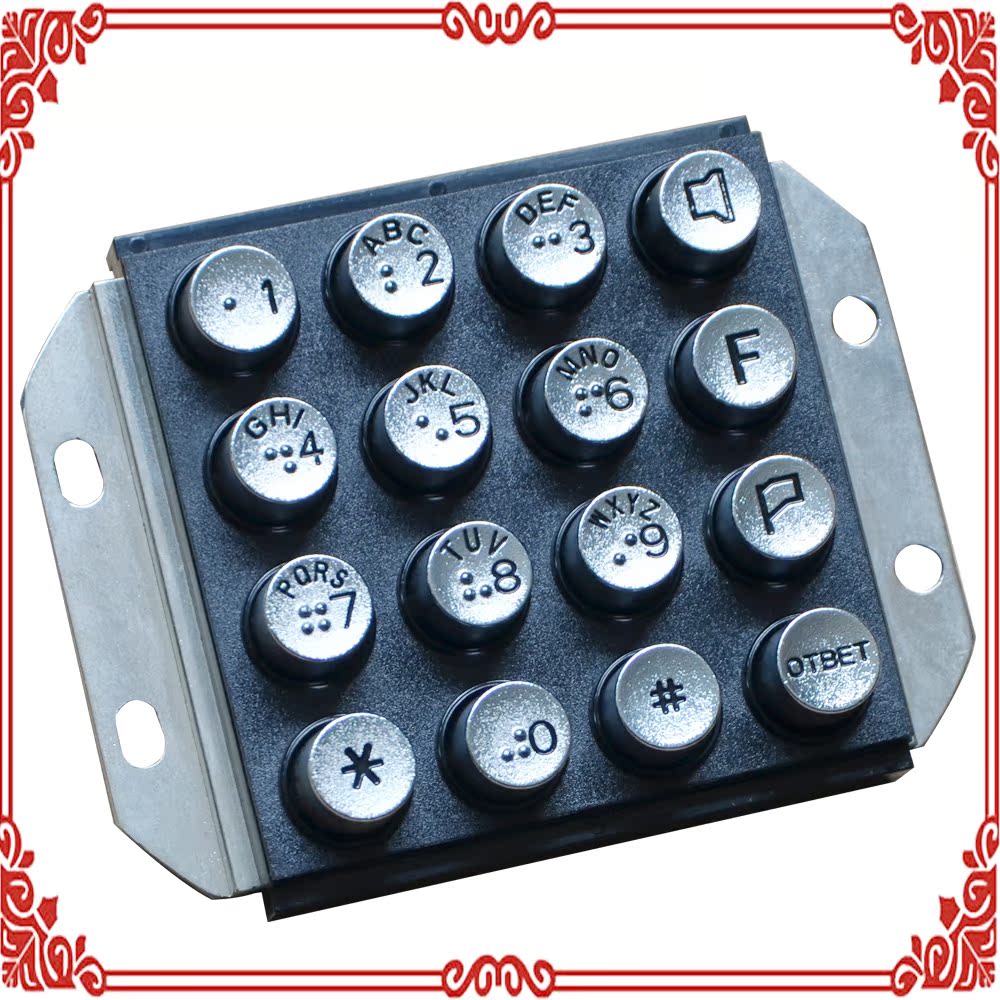 Russian braille zinc alloy 16 bits round key keyboard public electric cable phone number 4X4 keys with braille