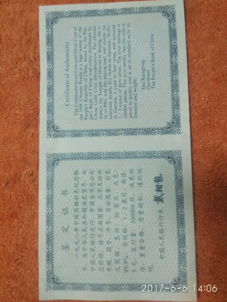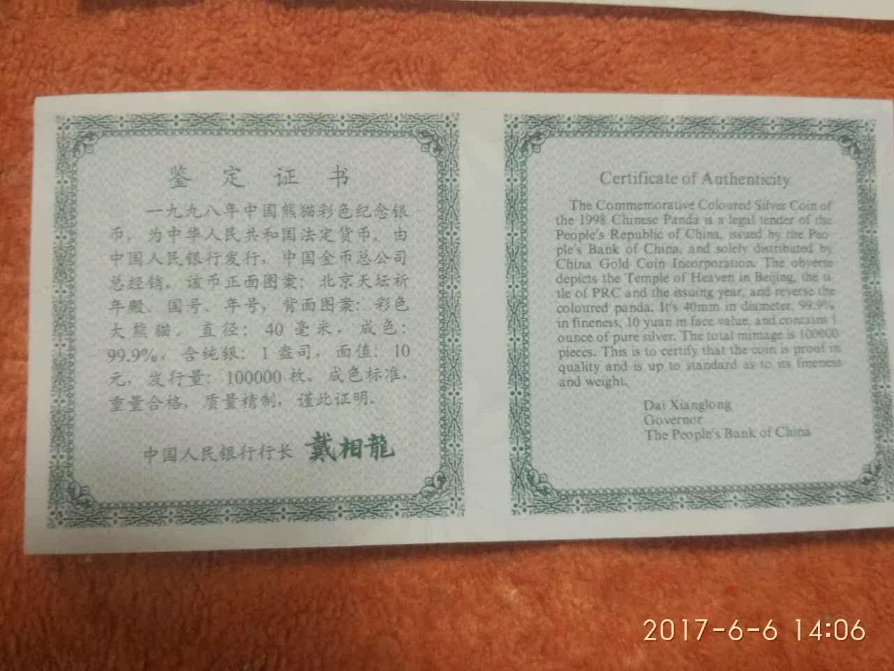 China Gold Coin Head Office 1998 Panda Colored Silver Coins 1 2 oz 1 oz Color Silver coin
