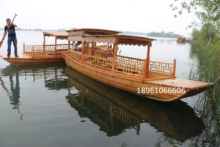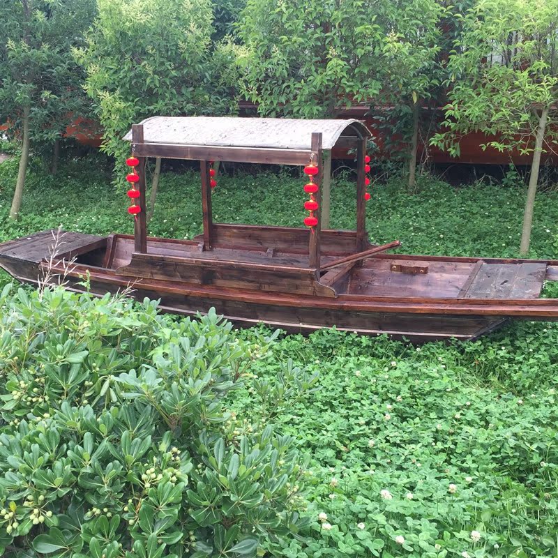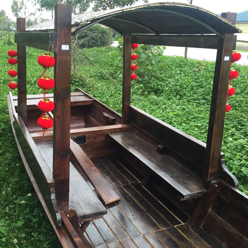 Customize a fluffy wooden boat Ucanopy ship Park Wind Scenic Scenic Boat with shed Canopy Retro Wood Boat Manufacturer