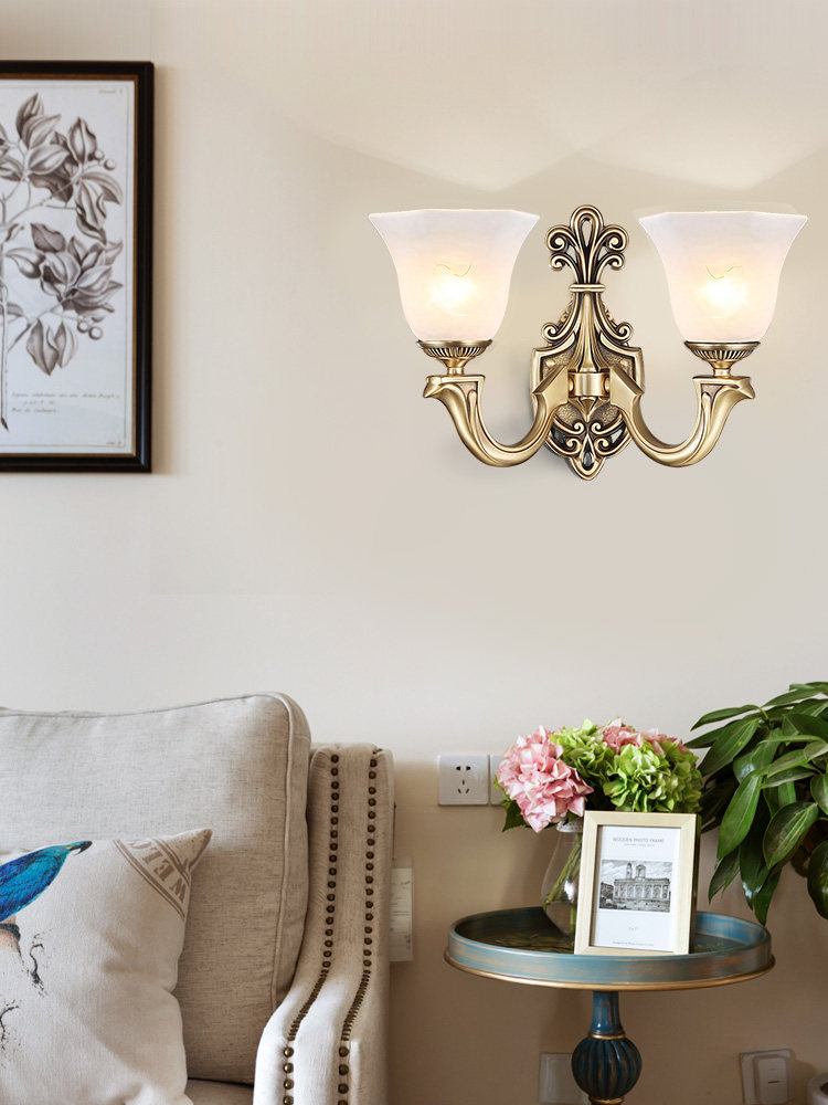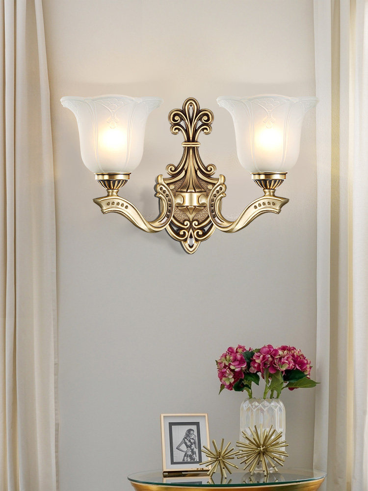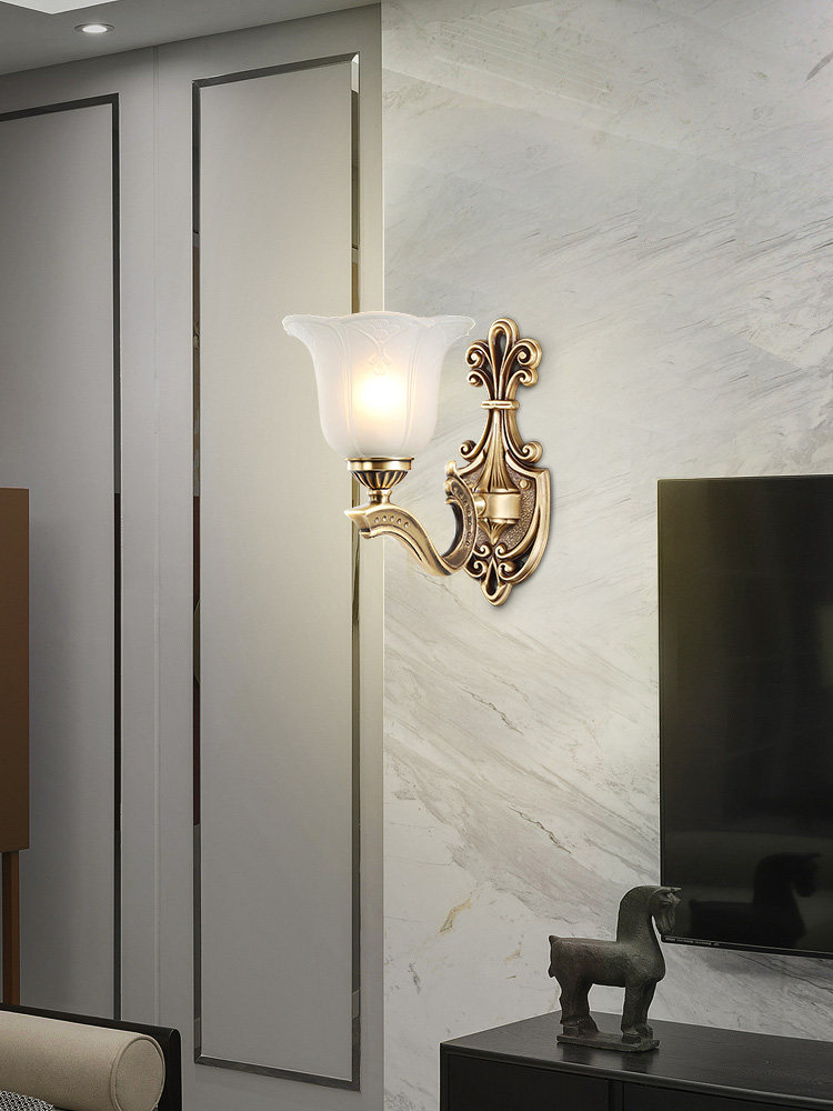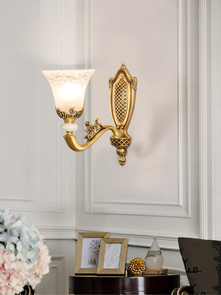 All copper European-style wall lamp modern minimalist bedside lamp bedroom mirror front lamp corridor aisle wall lamp living room background wall lamp