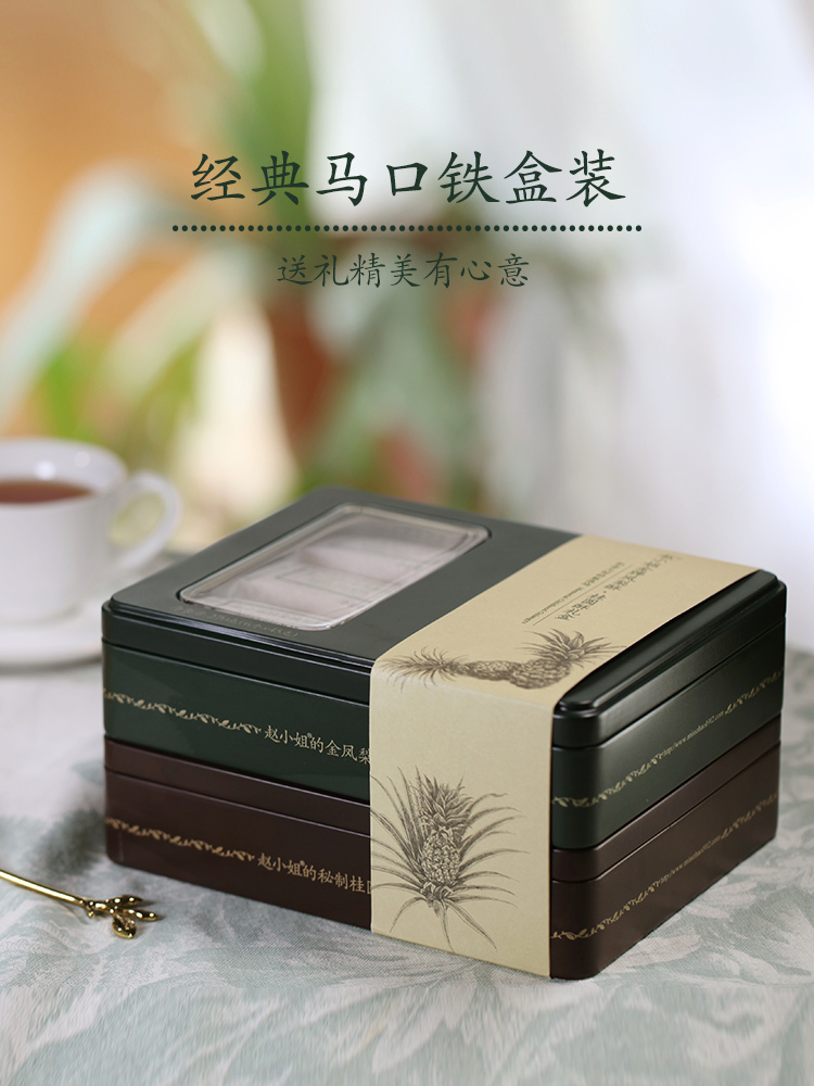 A box of longan cakes (in iron box) A box of golden pineapple cakes (in iron box)