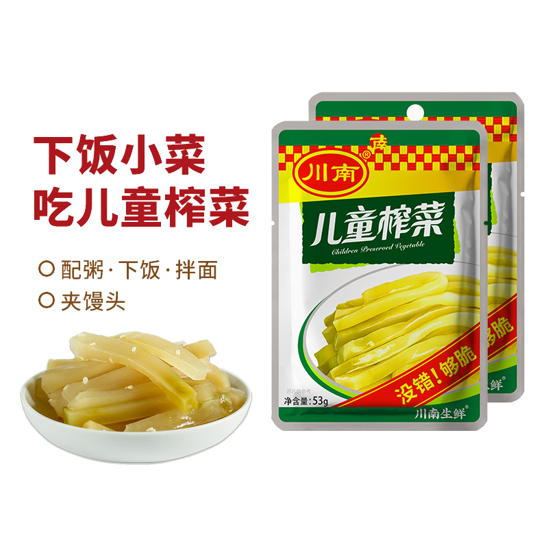 South Sichuan children's mustard 53g*10 bags refreshing next meal pickles South Sichuan mustard Sichuan pickled pickles small package