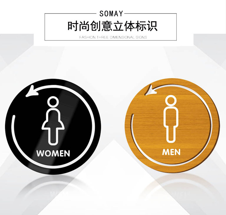 Round wood-grain toilet indicator male and female toilet sign sign WC tip