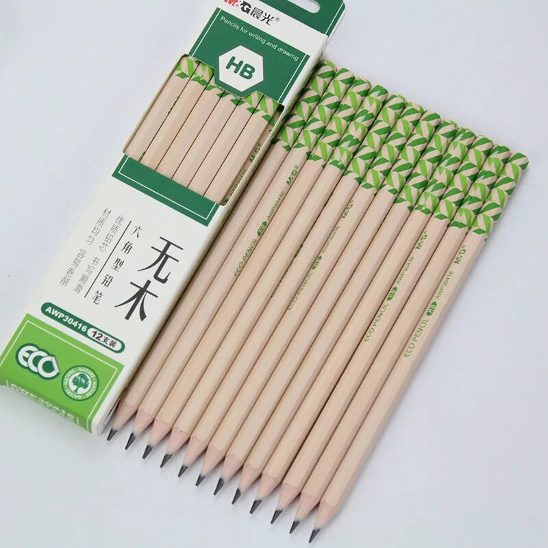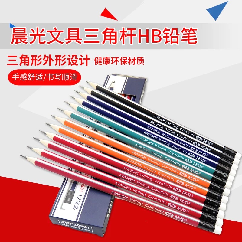 Morning light 2B wood pencil student-Child Calligraphy pencil not easy to break HB triangle Hexagonal pencil Batch Send eraser