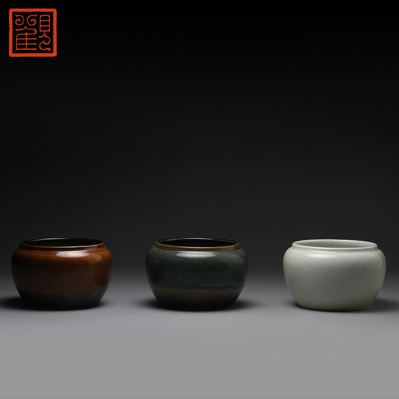 Guanfu Museum Ceramic Water Bowl Medium Double Circle Washing Jingdezhen Crude Pottery Kiln Changed Tea Washing Pen Washing Tea Ceremony Accessories